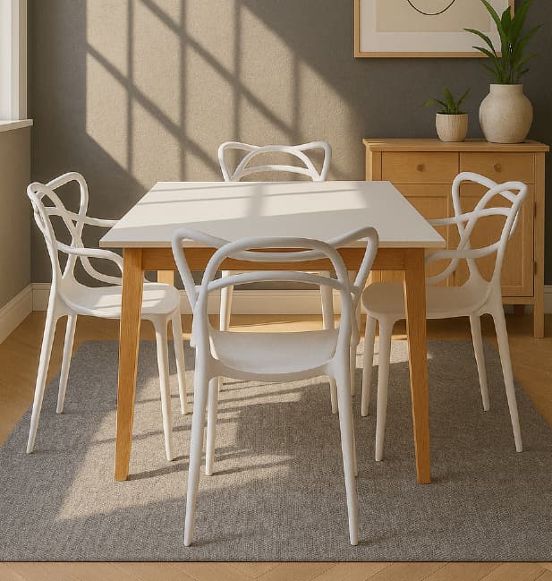 Perfecto para cocinas, comedores pequeños, terrazas o espacios modernos, uniendo funcionalidad, resistencia y diseño escandinavo elegante.